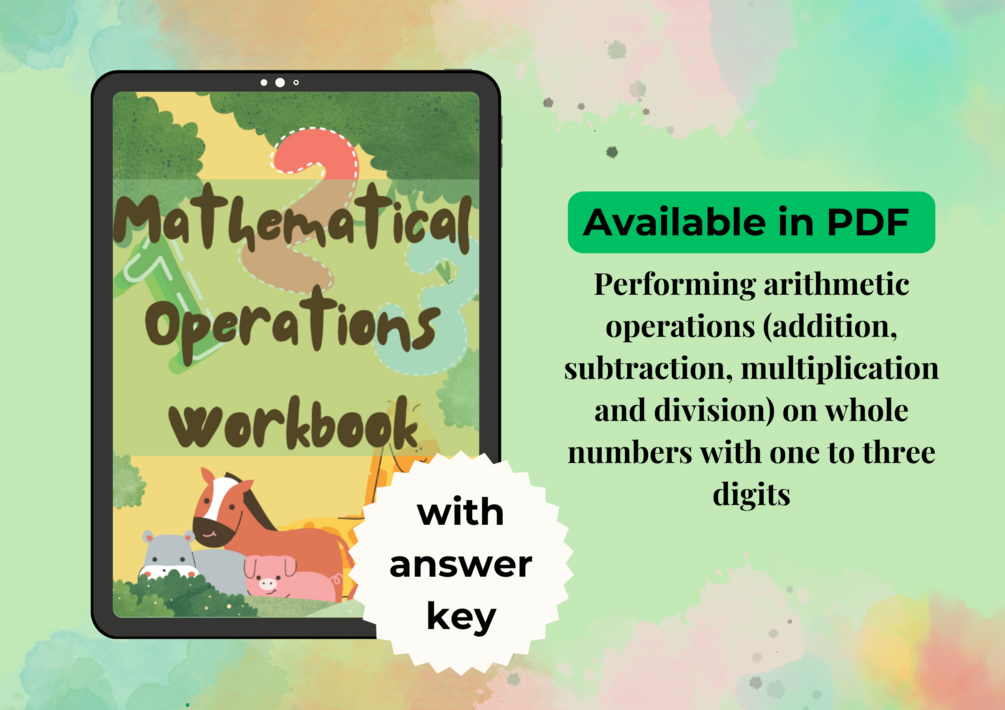 Our digital mathematical operations workbook for kids provides more than 50+ practice exercises – in addition, subtraction, multiplication, and division – for your kids, in order for them to master the mathematical operations.